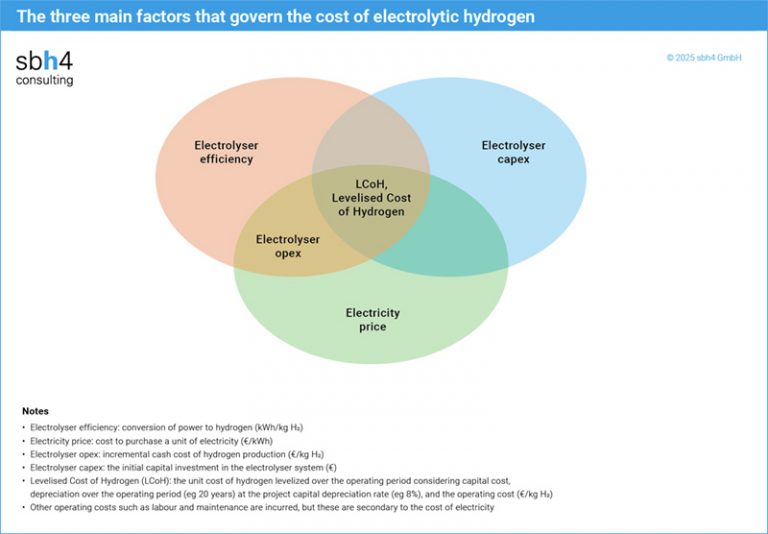 The three main fac­tors that gov­ern the cost of elec­trolyt­ic hydro­gen